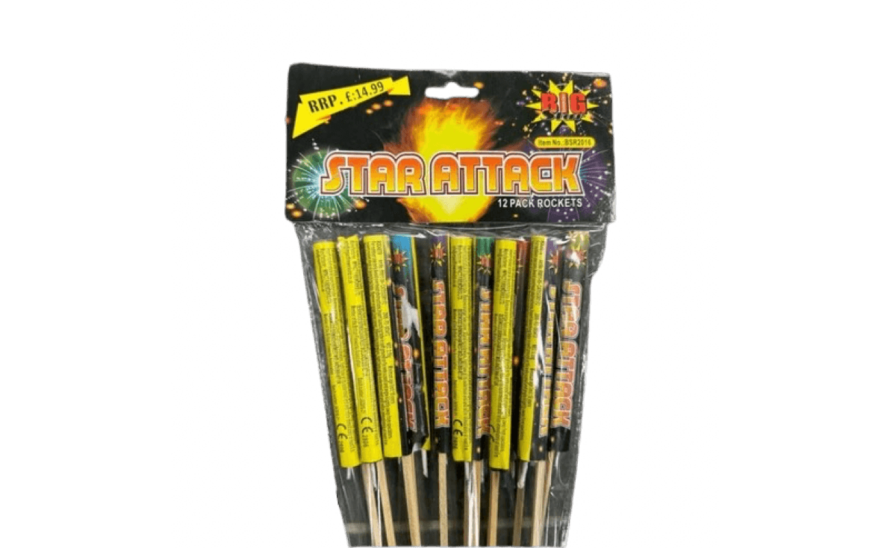 These superb 50 gram 1.3G Rockets are built to impress, with loud and large bursts, packed with vivid stars in 5 beautiful effects, which include: Multicolour Stars, Green to Crackling Stars, Red Coconut Tree, Brocade Crown and White Strobe Stars… Stunning effects!