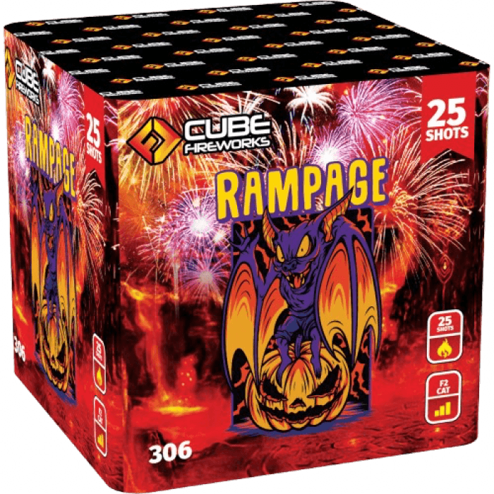 Unleash pure chaos in the sky with Rampage! This 25-shot aerial barrage erupts with a fierce mix of red, green, and silver coconuts intertwined with dazzling chrysanthemums. A small high-impact display piece that fills the night with colour, crackle, and unstoppable energy!